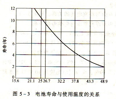 由圖5—3可見(jiàn),溫度對(duì)電池的自然老化過(guò)程有很大影響。溫度上升,電池壽命下降。