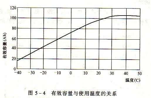 (1)從圖5-2中可以看出使用溫度對(duì)電池有效容量的影響。